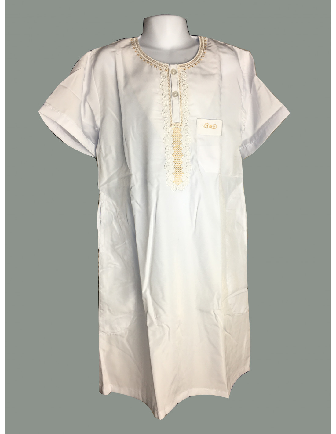 Qamis pour enfant type pakistanais, brodée sur le buste et la poche en beige. Très original, haute qualité.